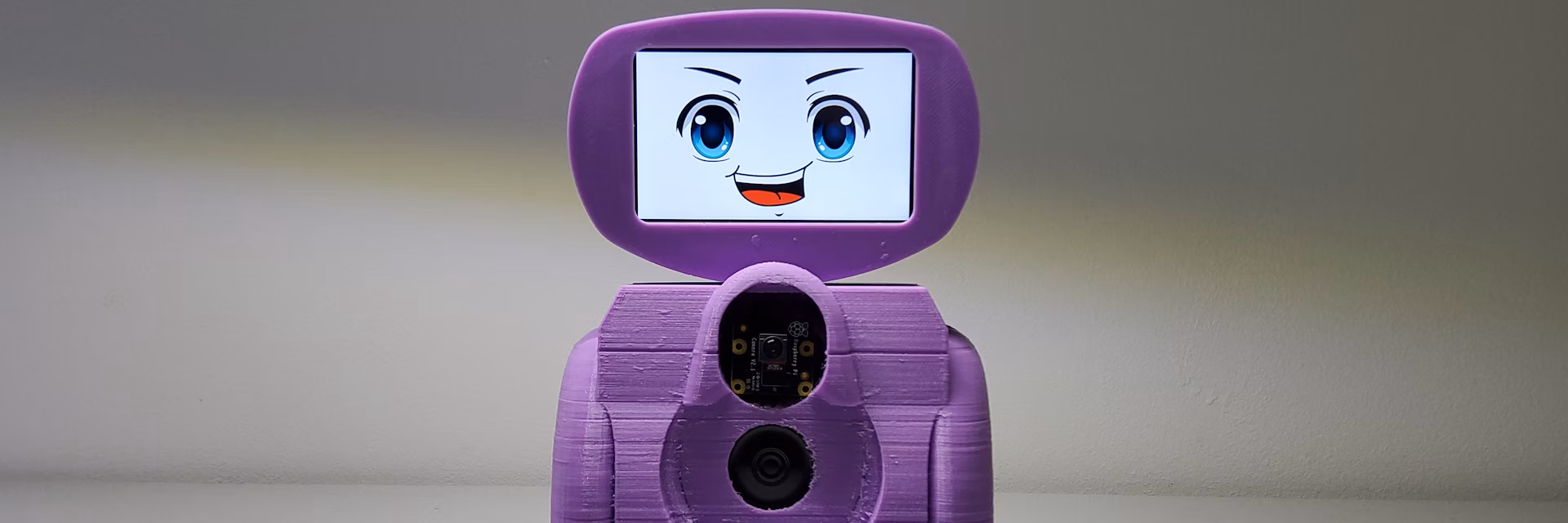 El robot desarrollado en nuestro equipo cuenta con micrófono, altavoces y una interfaz amigable, que simula expresiones faciales, con el fin de facilitar la comunicación con los pequeños.